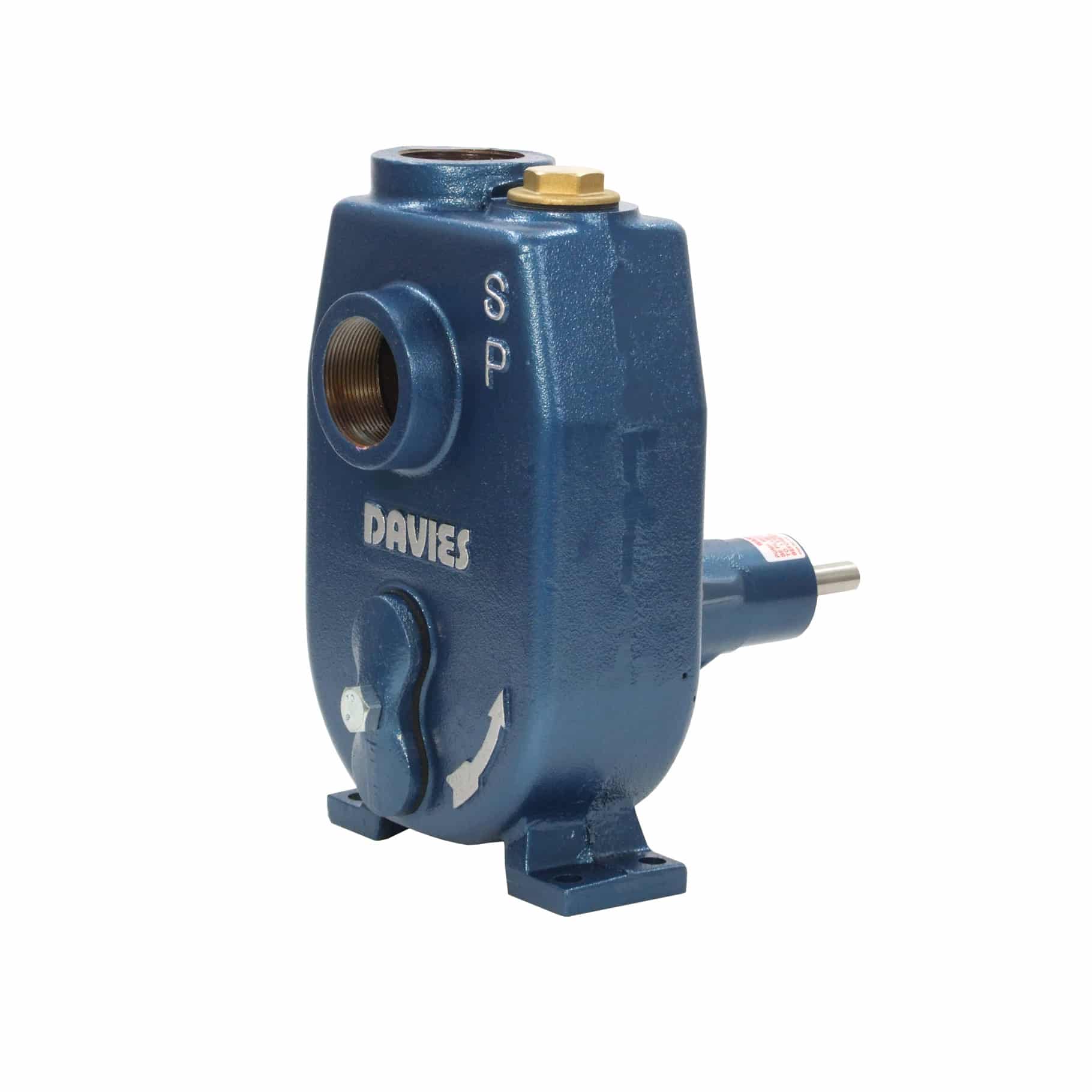 The SPM series pumps are a bare shaft, pedestal mount self-priming centrifugal water pump for belt drive or direct drive from separate power source with the same unique features of the SPK series. The Davies classic SPK/SPM differ from conventional self-priming pumps as they have no check valve or any other type of valve built in, nor is there any re-circulation of water during the pumping cycle once the pump is primed. This unique design gives positive pumping, low cost and maintenance, with high efficiency.