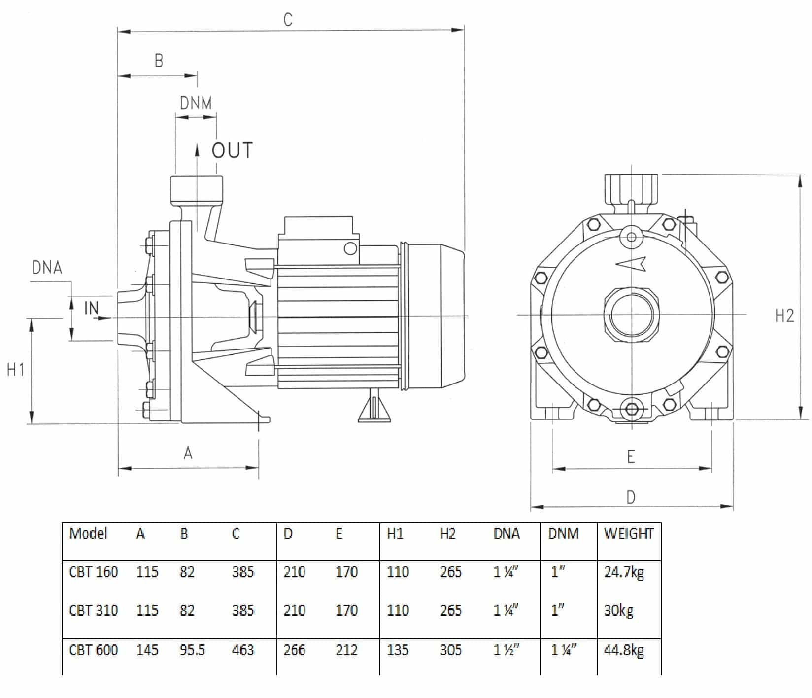 The Pentax CBT310 is a Cast Iron twin impeller centrifugal pump designed for high flow and pressure systems. Ideal for irrigation, farming, water transfer, industrial and agricultural applications