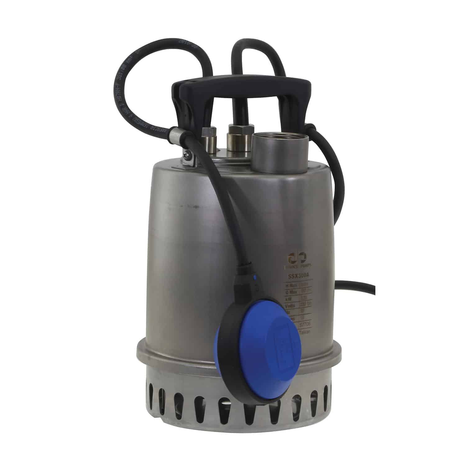 The Davies Pumps SSX series submersible pumps are a durable stainless, compact high performing drainage pump for construction sites, swimming pool and small storm water cesspit drainage and many other applications. Available without float switch or with cable type or vertical canister type float switch. The impeller is open faced to allow up to 10mm solids and the pump can also have a low suction screen which allows the pump to suck down to 5mm. The top discharge design reduces space usage for tight installs and cools the motor even while running partially submerged.
