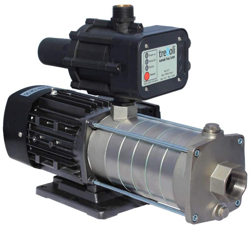 The Trevoli CM4-60 is a stainless steel multistage pump built to a proven design. All parts that come into contact with the pumped water are stainless steel. They are ideal for domestic water supply where suction is not required. The CM2 and CM4 ranges come in 5 models and are designed to provide mains pressure for homes ranging from small single level to large multi-level homes and lifestyle blocks. CM pumps are very quiet in their operation.